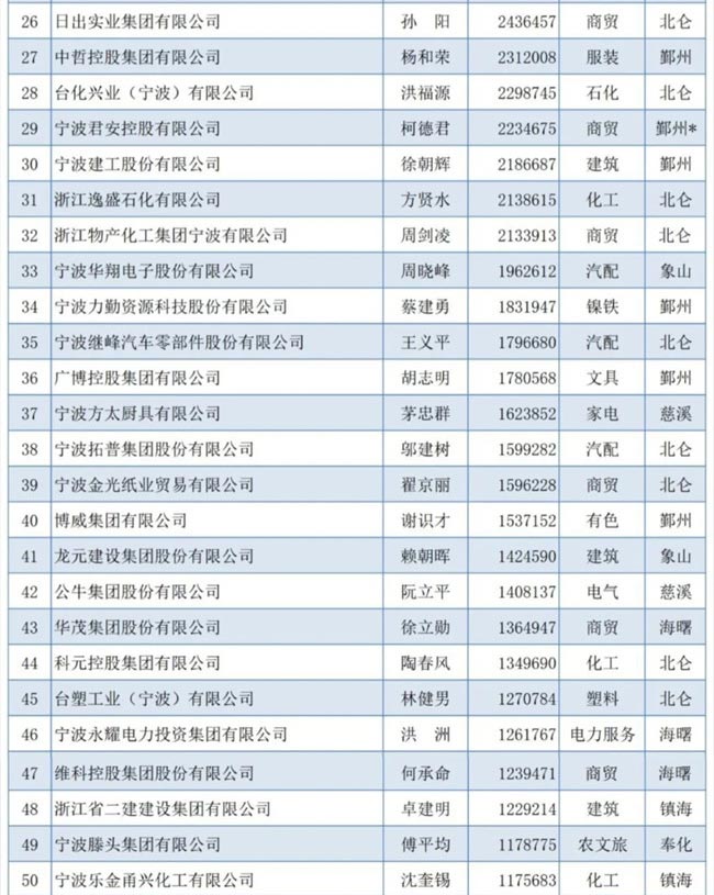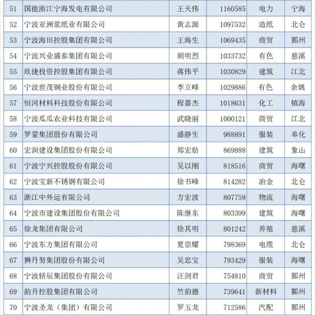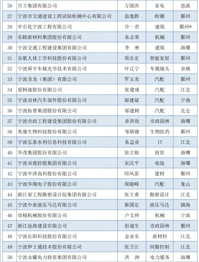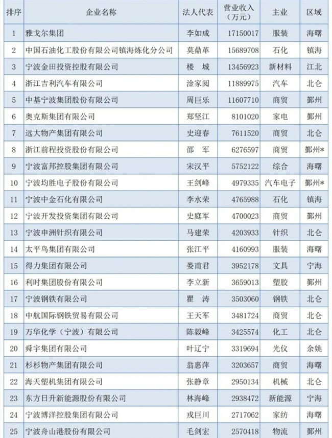 2023寧波市競(jìng)爭(zhēng)力企業(yè)百強(qiáng)榜單