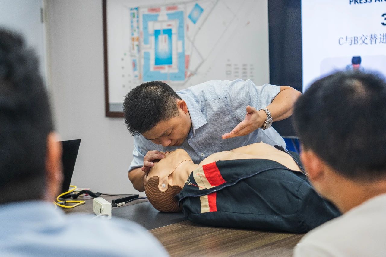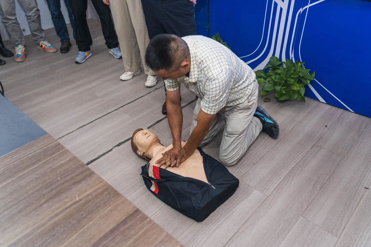 現(xiàn)場演示環(huán)節(jié),劉老師著重介紹了心肺復(fù)蘇術(shù)的操作要領(lǐng),強(qiáng)調(diào)“黃金四分鐘”的重要性,大家積極參與互動體驗,將理論知識和實踐相結(jié)合,更好地對應(yīng)急救護(hù)知識融會貫通,現(xiàn)場學(xué)習(xí)氣氛濃厚。