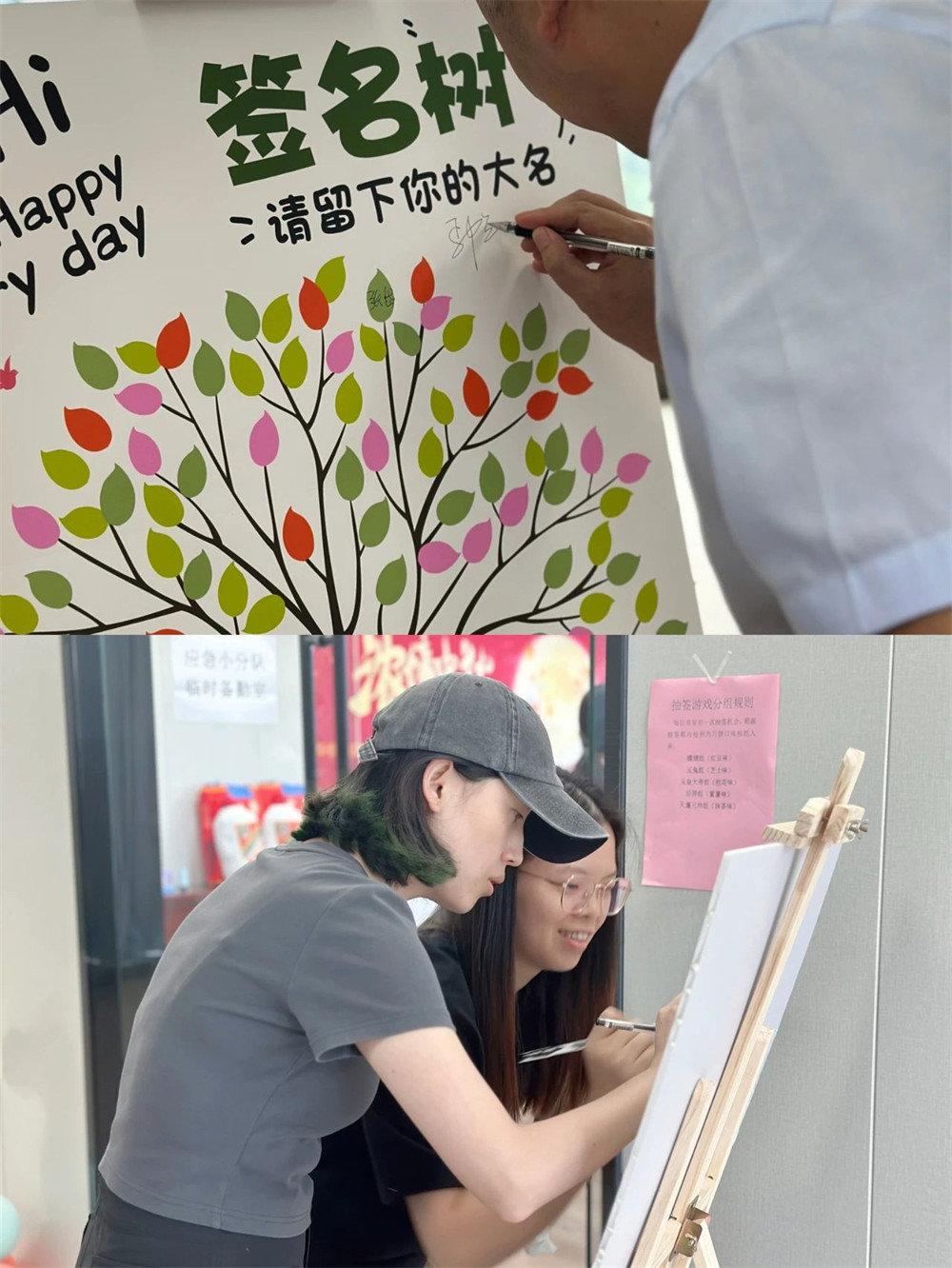 最后,集團(tuán)副總經(jīng)理虞賽月女士親臨活動(dòng)現(xiàn)場(chǎng)為我們的壽星抽取了特別錦鯉大獎(jiǎng),最終大獎(jiǎng)得主是來自我們工程部的張岱,他在抽獎(jiǎng)箱中的心愿賀卡中是這樣寫道的:我叫張岱,我來自工程部,祝愿公司發(fā)展越來越好,嘎嘎中標(biāo)!